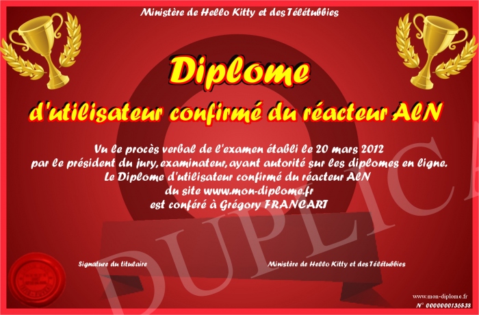 Envoyez par email votre Diplôme d'utilisateur confirmé du réacteur AlN personalisé