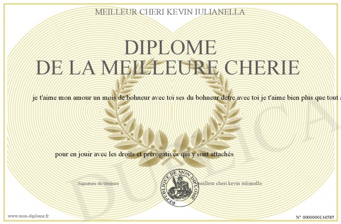 Envoyez par email votre Diplôme de la meilleure cherie personalisé
