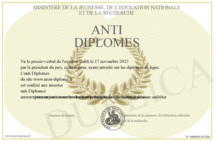 Envoyez par email votre anti Diplômes personalisé