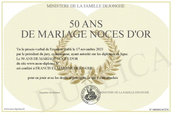 Envoyez par email votre 50 ANS DE MARIAGE NOCES D'OR personalisé