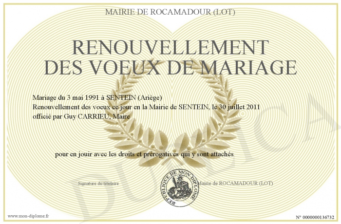 Envoyez par email votre RENOUVELLEMENT DES VOEUX DE MARIAGE personalisé