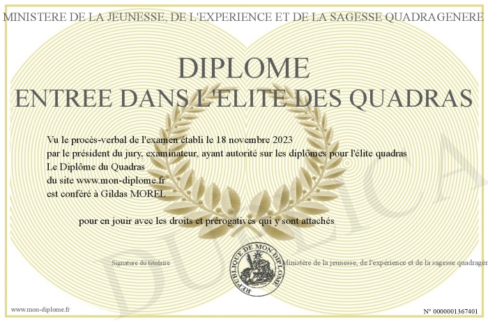 Envoyez par email votre Diplôme entrée dans l'Elite des Quadras personalisé