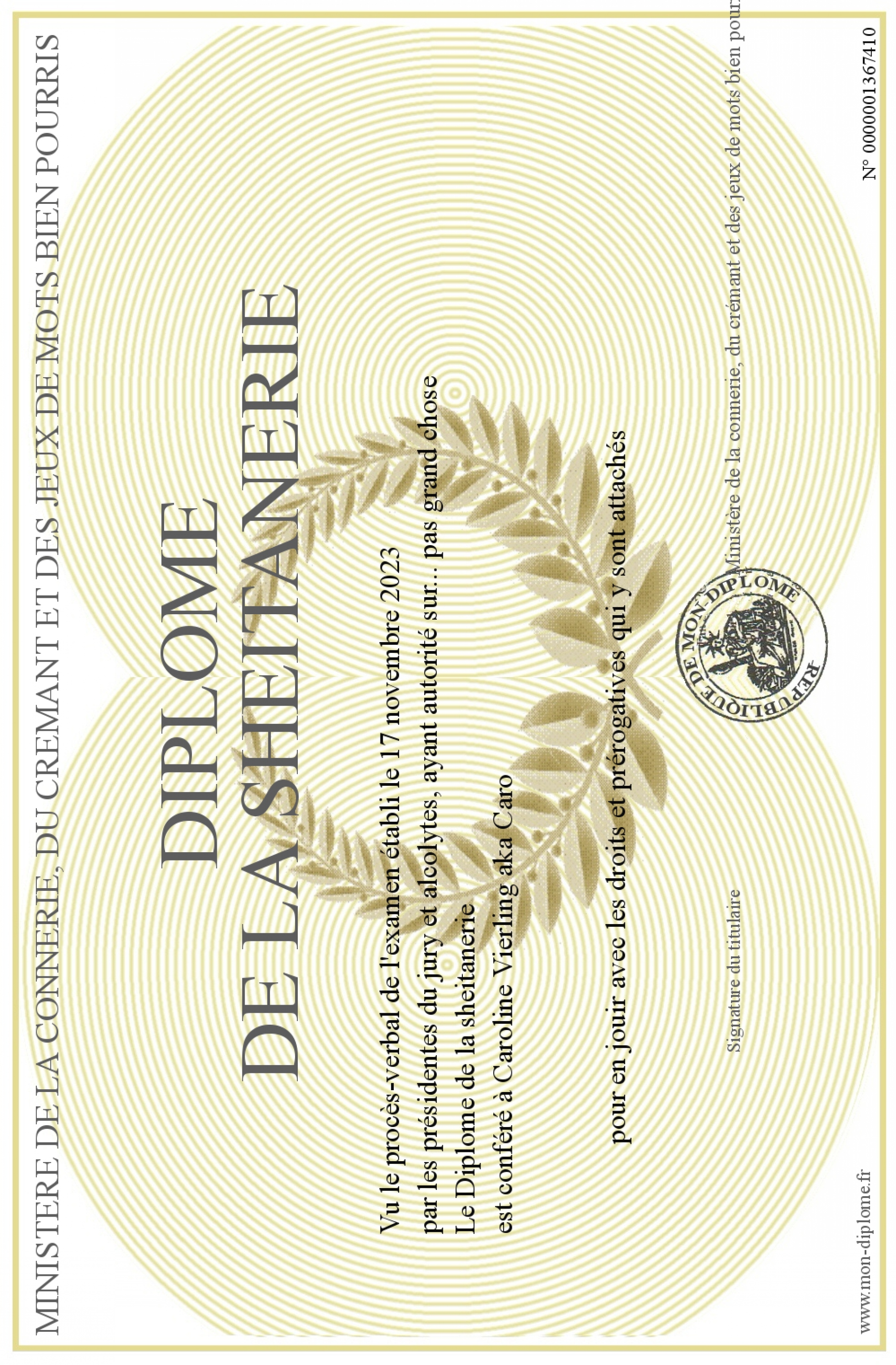 Envoyez par email votre Diplome de la sheitanerie personalisé