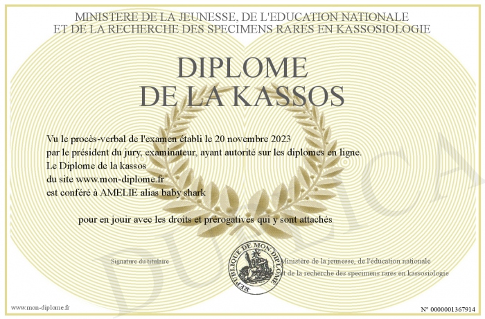 Envoyez par email votre Diplôme de la kassos personalisé