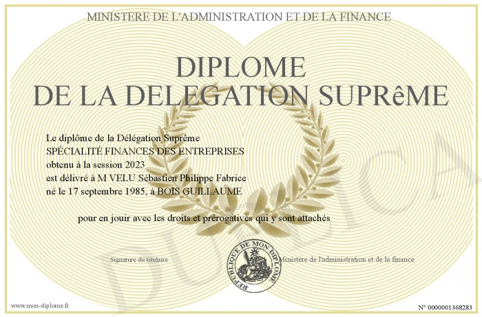 Envoyez par email votre Diplôme de la délégation suprême personalisé