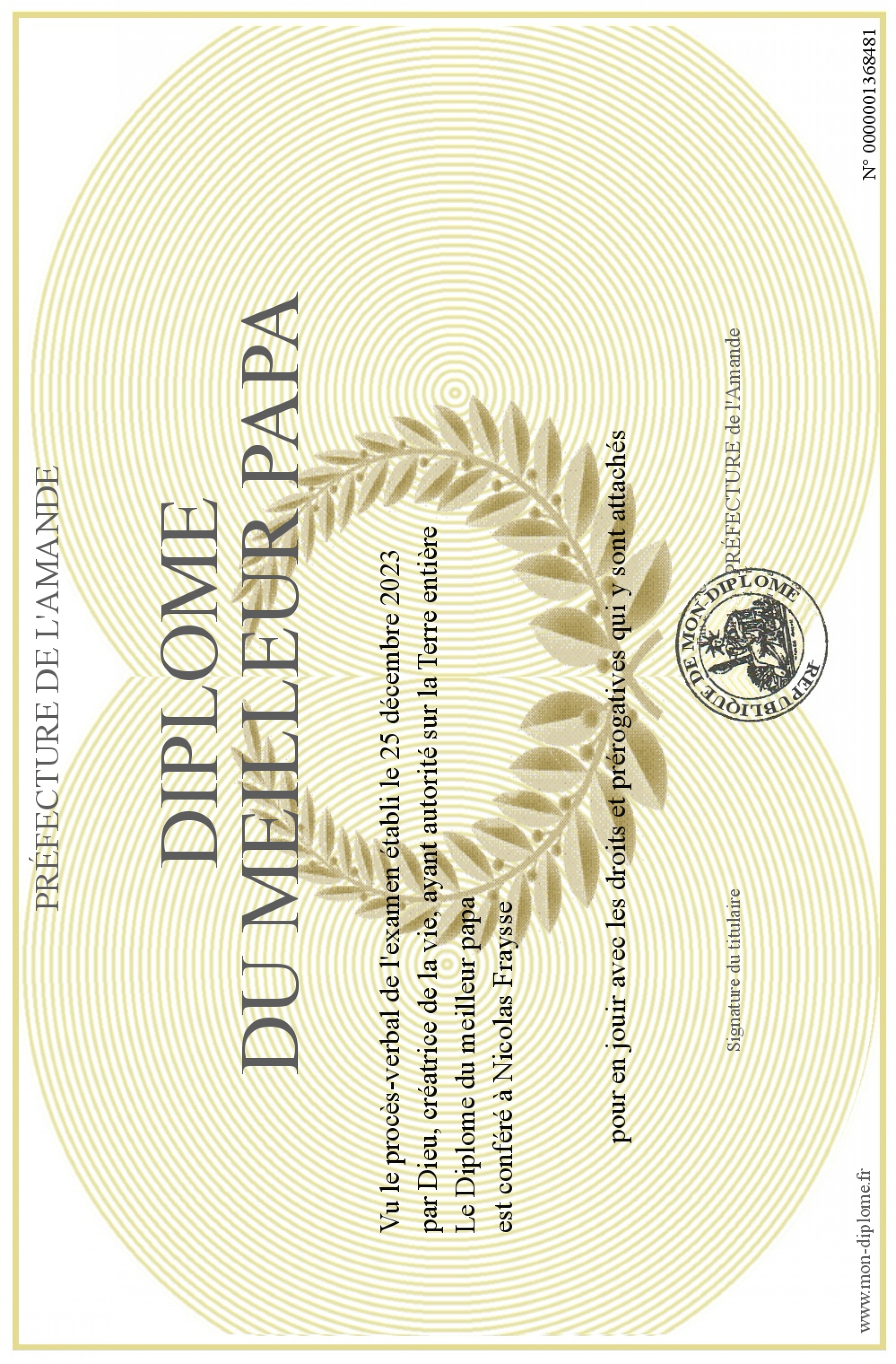 Envoyez par email votre Diplôme du meilleur papa personalisé