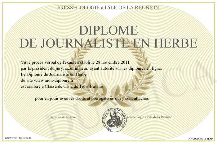 Envoyez par email votre Diplôme de Journaliste en Herbe personalisé