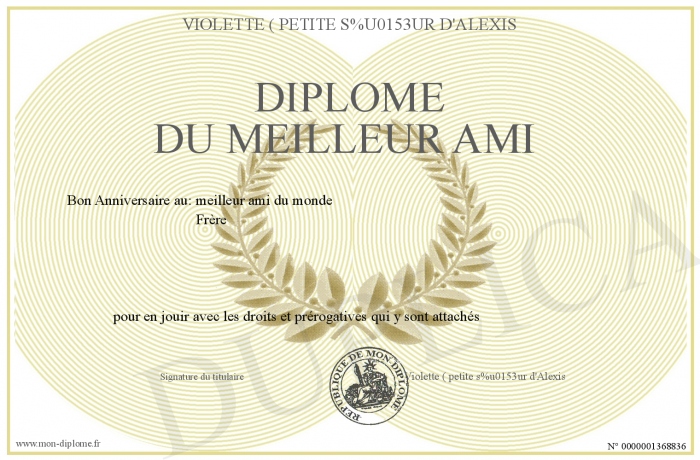 Envoyez par email votre Diplôme du meilleur ami personalisé