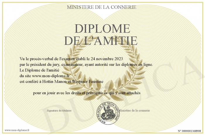 Envoyez par email votre Diplôme de l'amitié personalisé