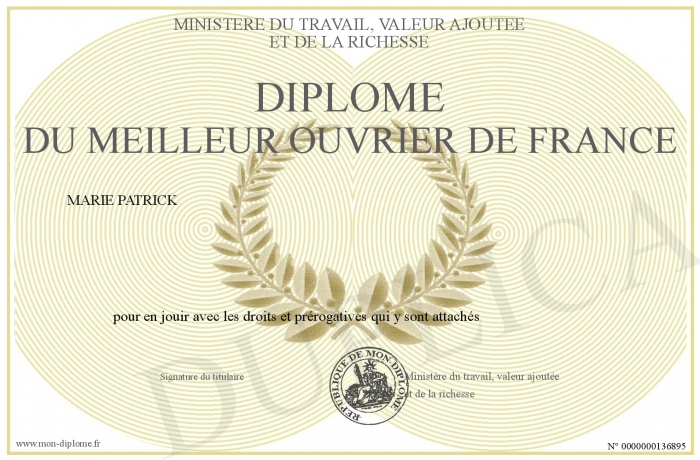 Envoyez par email votre Diplôme du Meilleur Ouvrier de France personalisé