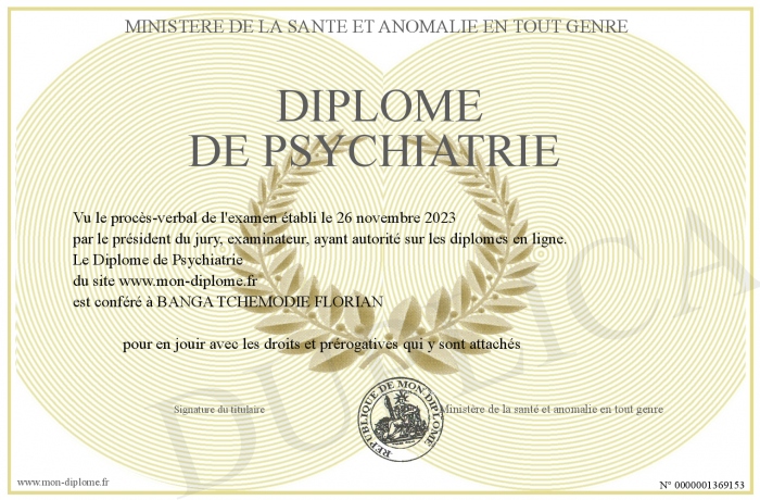 Envoyez par email votre Diplôme de Psychiatrie personalisé