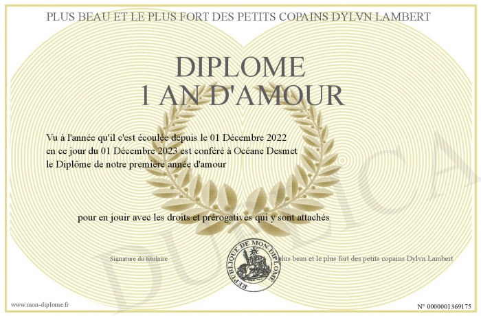 Envoyez par email votre Diplôme 1 an d'amour personalisé