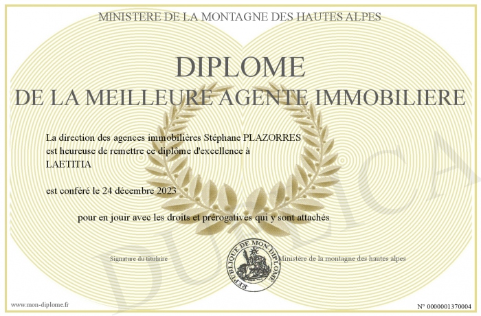 Envoyez par email votre Diplôme de la meilleure agente immobilière personalisé