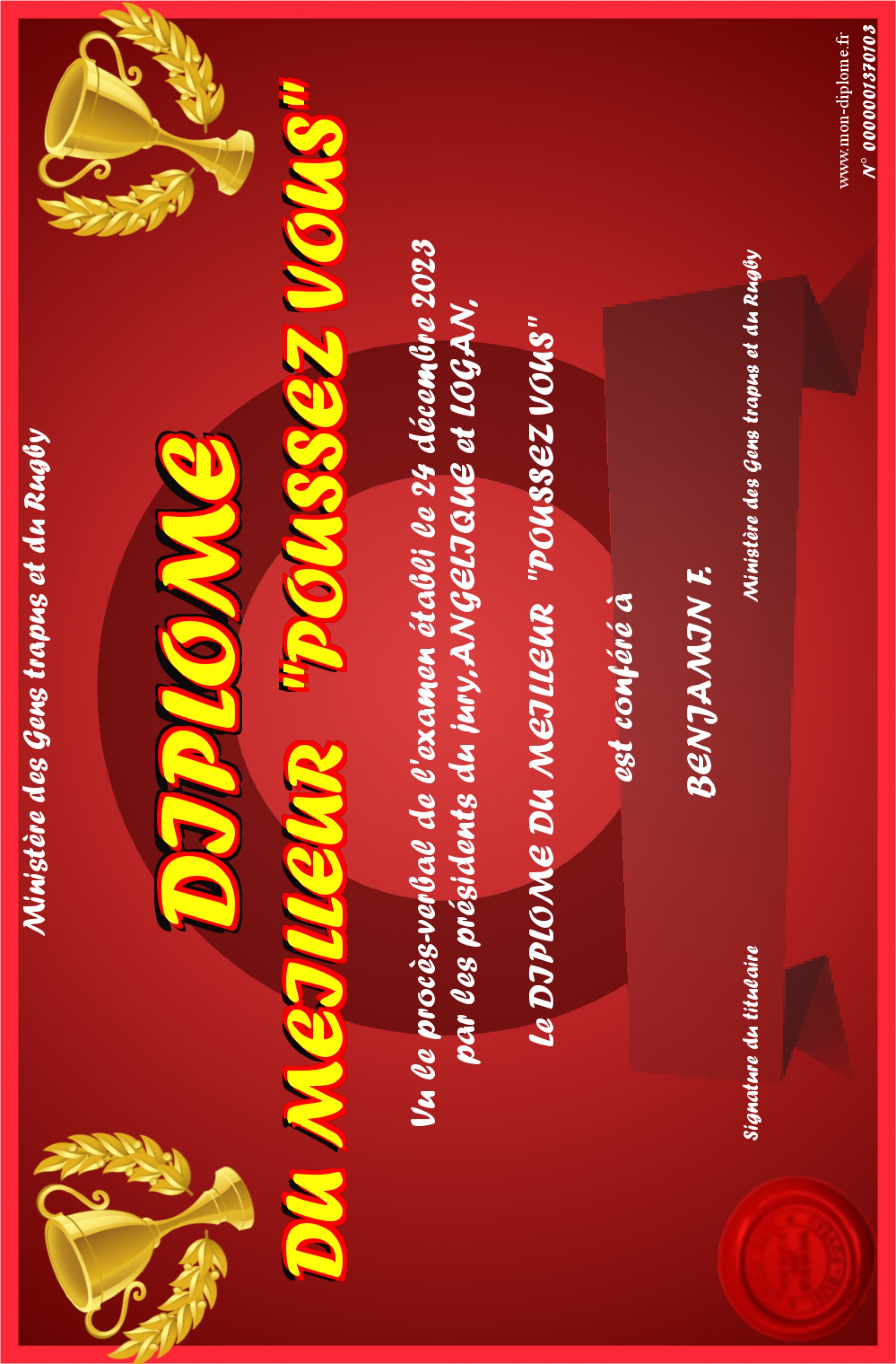 Envoyez par email votre DIPLOME DU MEILLEUR -POUSSEZ VOUS- personalisé