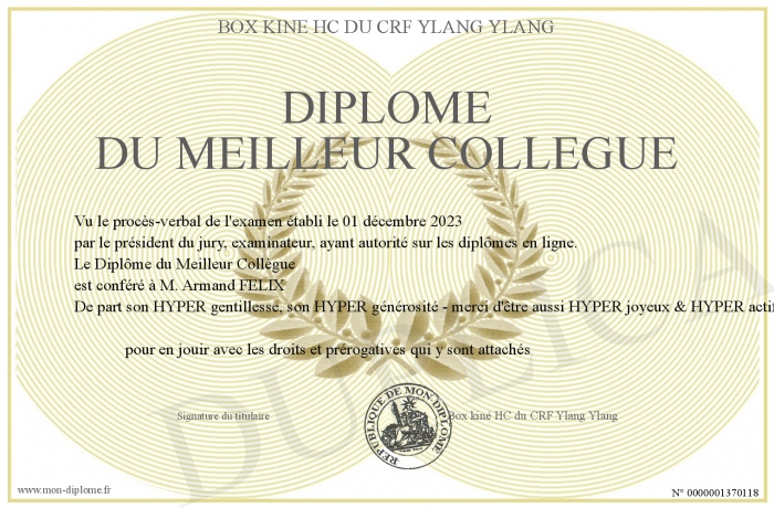 Envoyez par email votre Diplôme du Meilleur Collègue personalisé