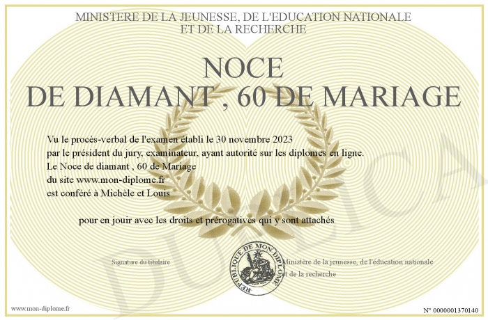 Envoyez par email votre Noce de diamant , 60 de Mariage personalisé