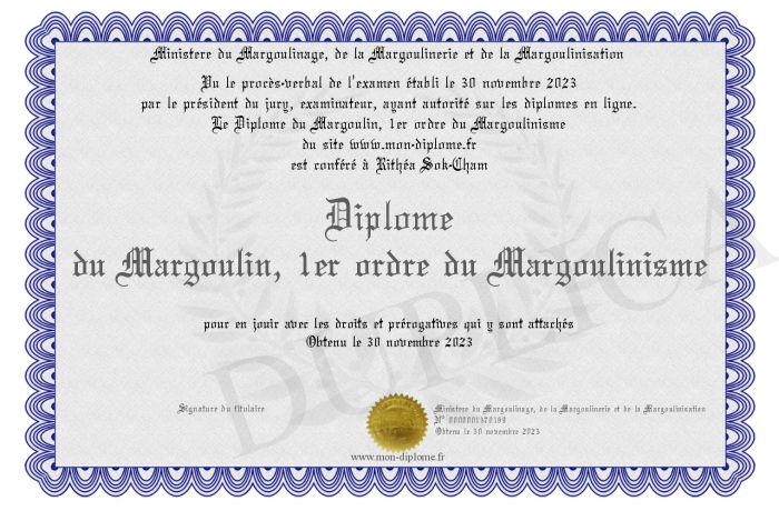 Envoyez par email votre Diplôme du Margoulin, 1er ordre du Margoulinisme personalisé