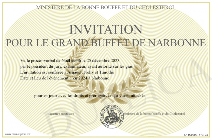 Envoyez par email votre INVITATION POUR LE GRAND BUFFET DE NARBONNE personalisé