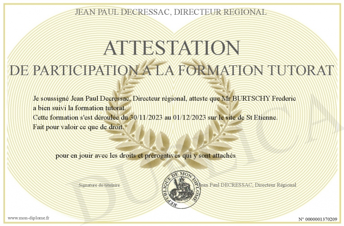 Envoyez par email votre Attestation de participation a la formation Tutorat personalisé