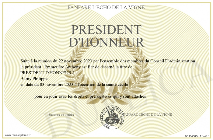 Envoyez par email votre PRESIDENT D'HONNEUR personalisé
