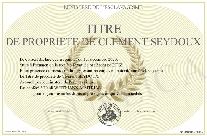 Envoyez par email votre Titre de propriété de Clément SEYDOUX personalisé