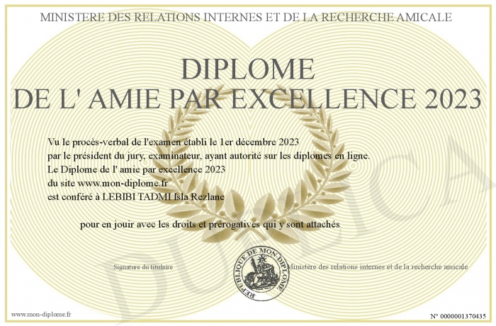 Envoyez par email votre Diplôme de l' amie par excellence 2023 personalisé