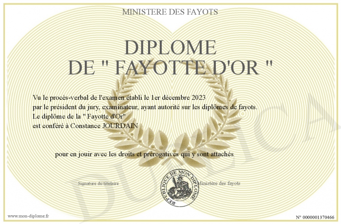 Envoyez par email votre Diplôme de - Fayotte d'Or - personalisé