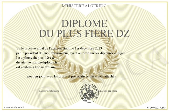 Envoyez par email votre diplôme du plus fière dz personalisé