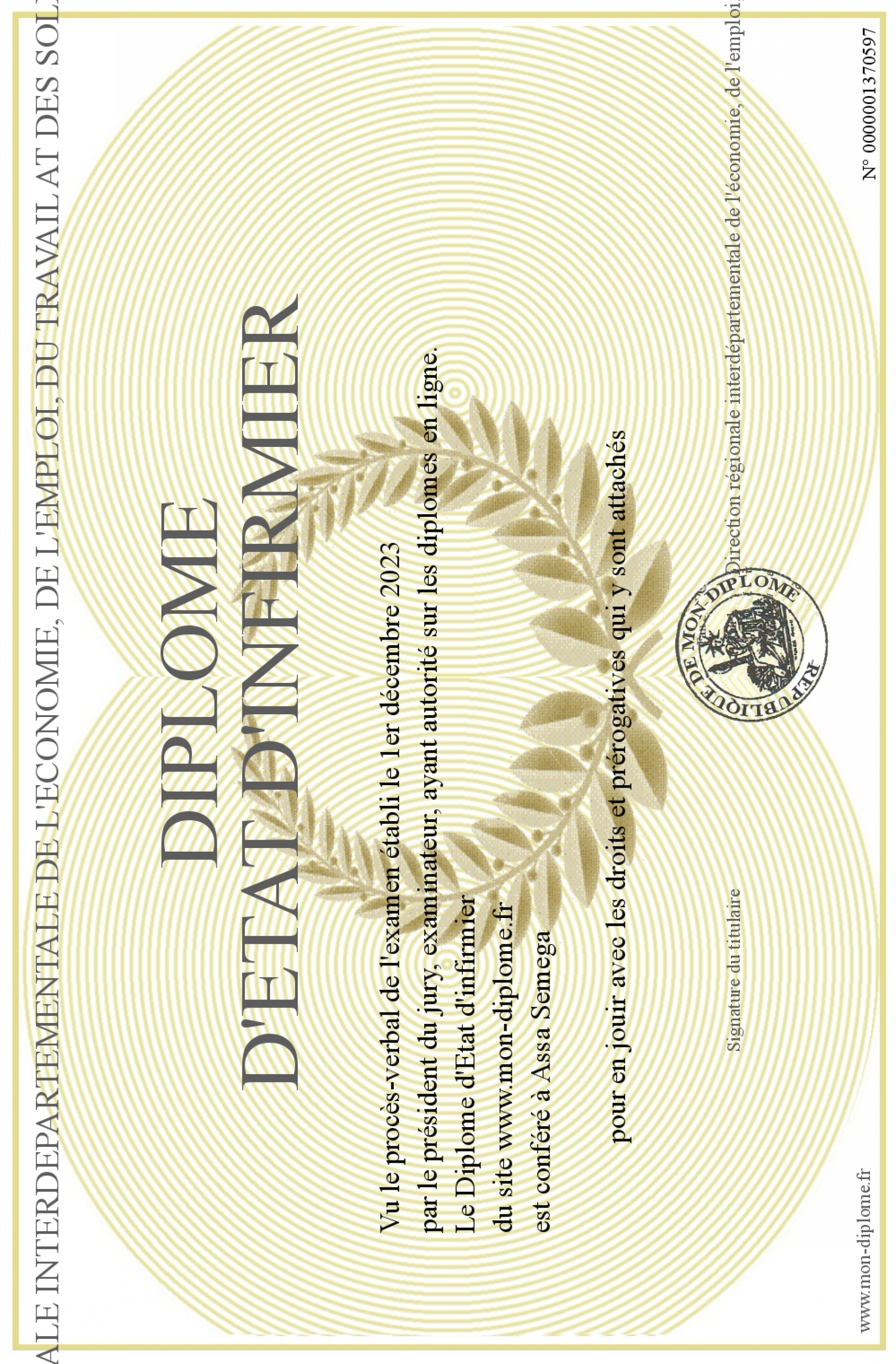 Envoyez par email votre Diplôme d'Etat d'infirmier personalisé