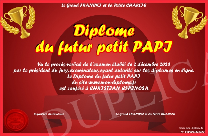 Envoyez par email votre Diplôme du futur petit PAPI personalisé