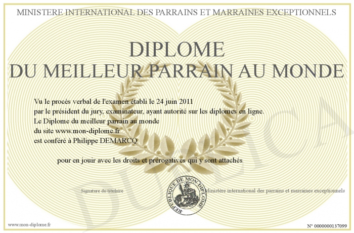 Envoyez par email votre Diplôme du meilleur parrain au monde personalisé