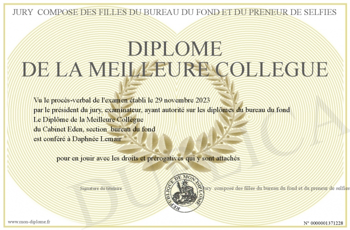 Envoyez par email votre Diplôme de la meilleure collègue personalisé
