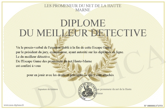 Envoyez par email votre Diplôme du meilleur détéctive personalisé
