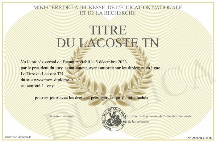 Envoyez par email votre Titre du Lacoste TN personalisé