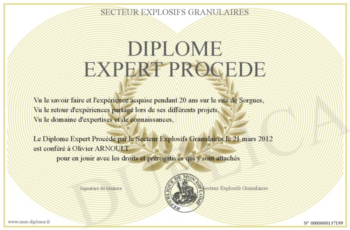 Envoyez par email votre Diplôme Expert Procédé personalisé