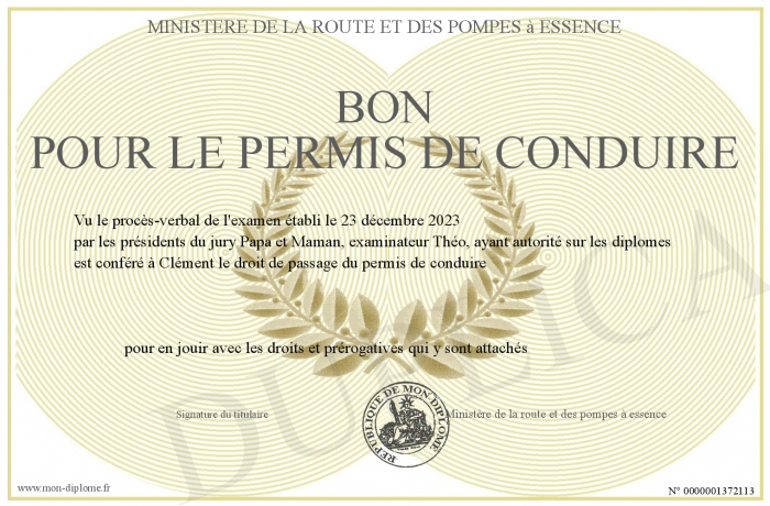 Envoyez par email votre Bon pour le permis de conduire personalisé