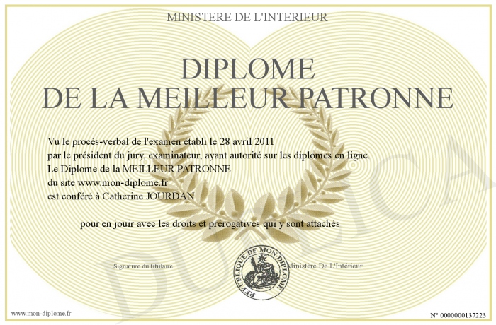 Envoyez par email votre Diplôme de la MEILLEUR PATRONNE personalisé
