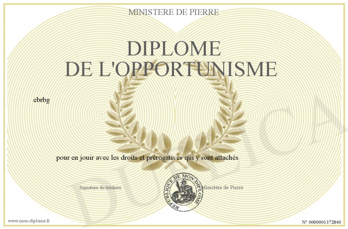 Envoyez par email votre Diplôme de l'opportunisme personalisé