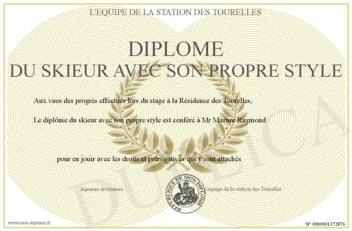 Envoyez par email votre Diplôme du skieur avec son propre style personalisé
