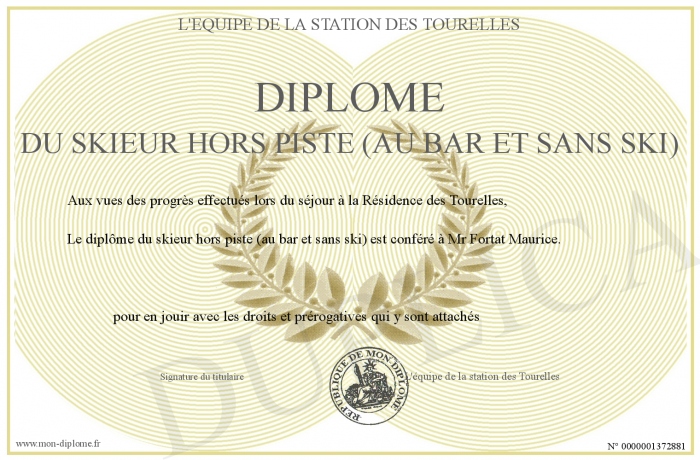 Envoyez par email votre Diplôme du skieur hors piste (au bar et sans ski) personalisé