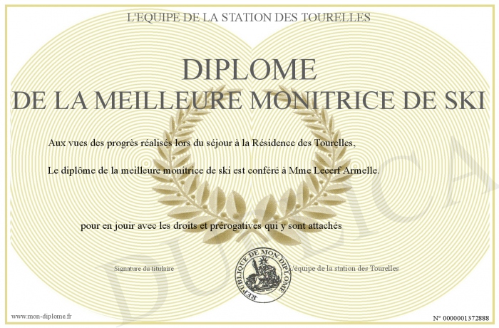 Envoyez par email votre Diplôme de la meilleure monitrice de ski personalisé