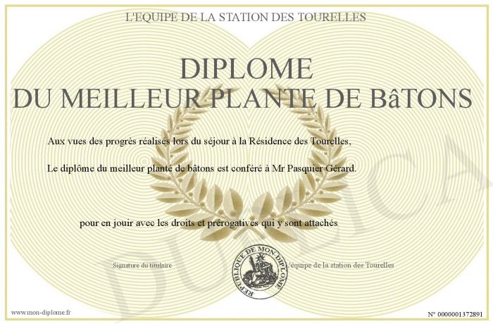 Envoyez par email votre Diplôme du meilleur planté de bâtons personalisé