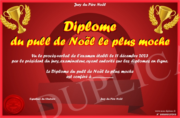 Envoyez par email votre Diplôme du pull de Noël le plus moche personalisé