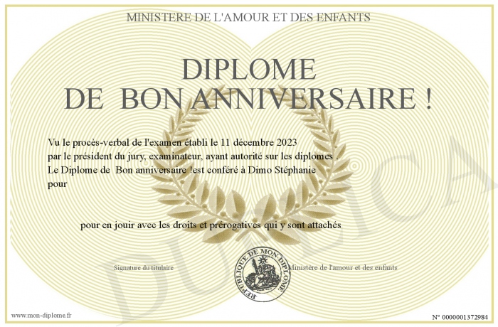 Envoyez par email votre Diplome de Bon anniversaire ! personalisé