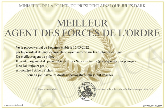 Envoyez par email votre Meilleur agent des forces de l'ordre personalisé