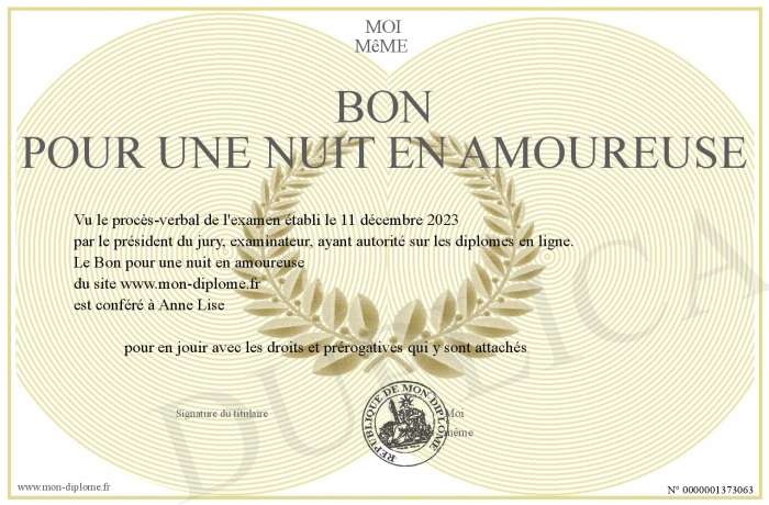 Envoyez par email votre Bon pour une nuit en amoureuse personalisé