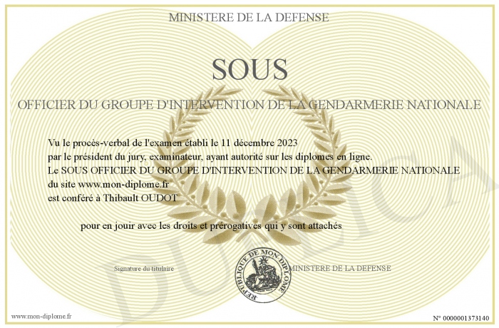 Envoyez par email votre SOUS OFFICIER DU GROUPE D'INTERVENTION DE LA GENDARMERIE NATIONALE personalisé