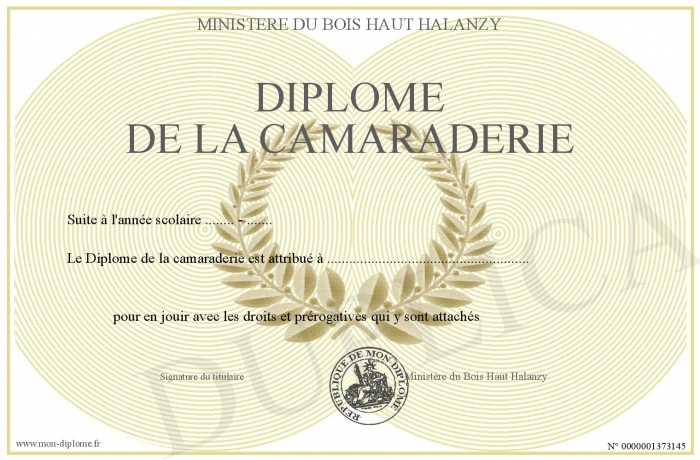 Envoyez par email votre Diplôme de la camaraderie personalisé