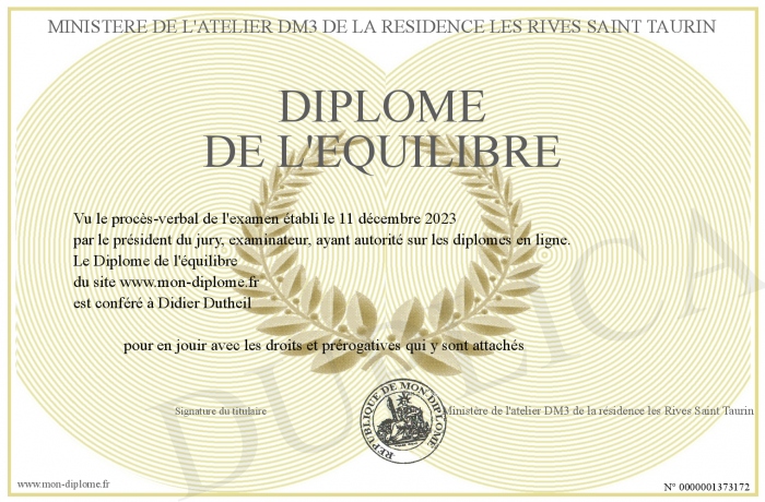 Envoyez par email votre Diplôme de l'équilibre personalisé