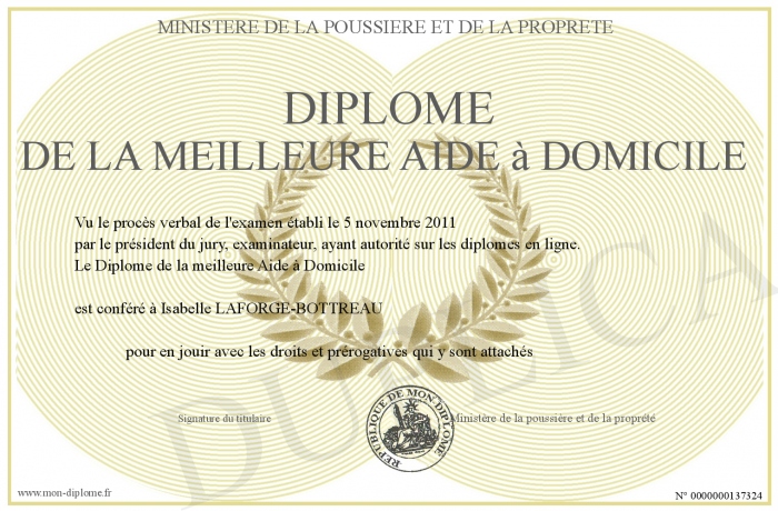 Envoyez par email votre Diplôme de la meilleure Aide à Domicile personalisé